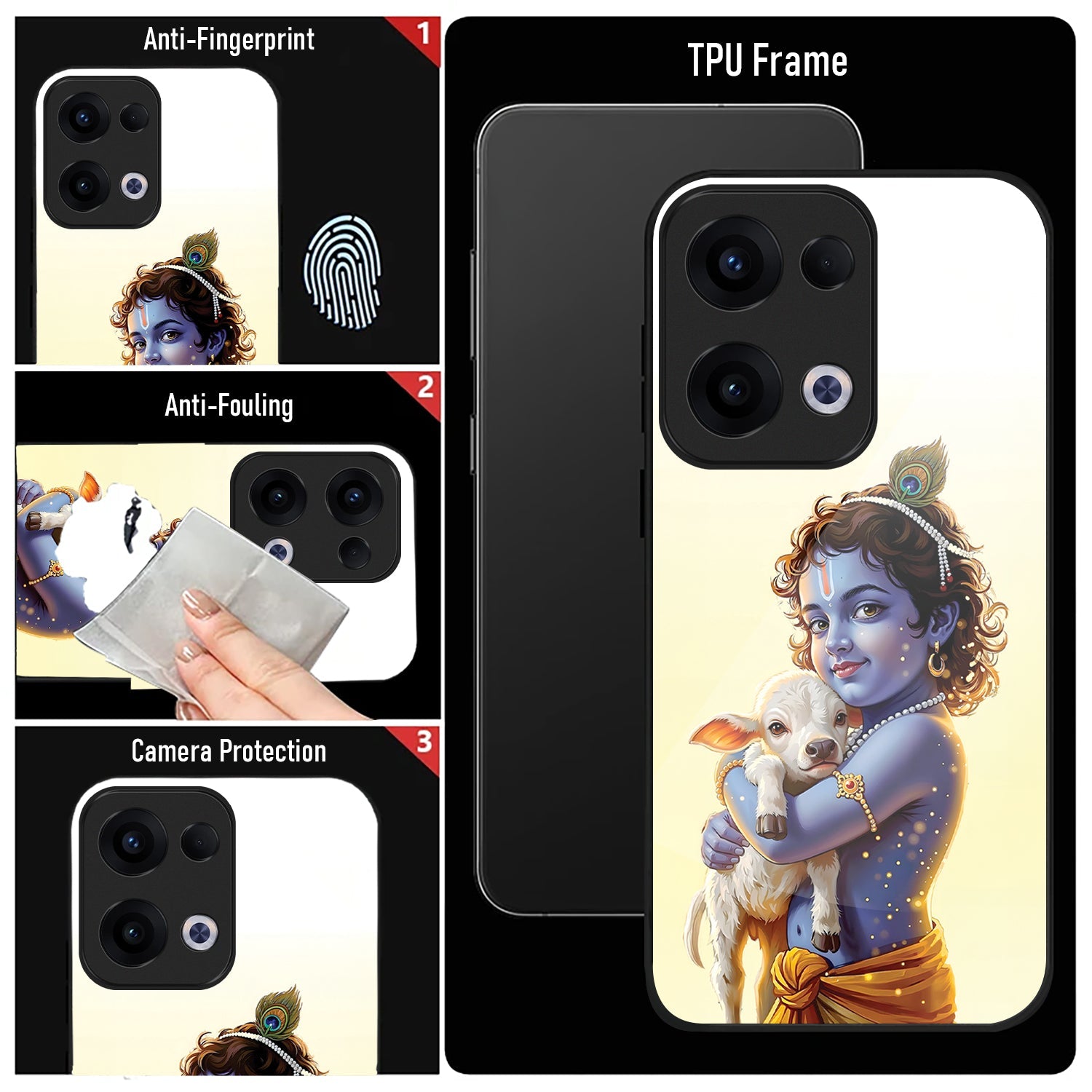 Oppo Reno 13 5G Premium Acrylic Shockproof Glass Back Case (Cute Krishna )