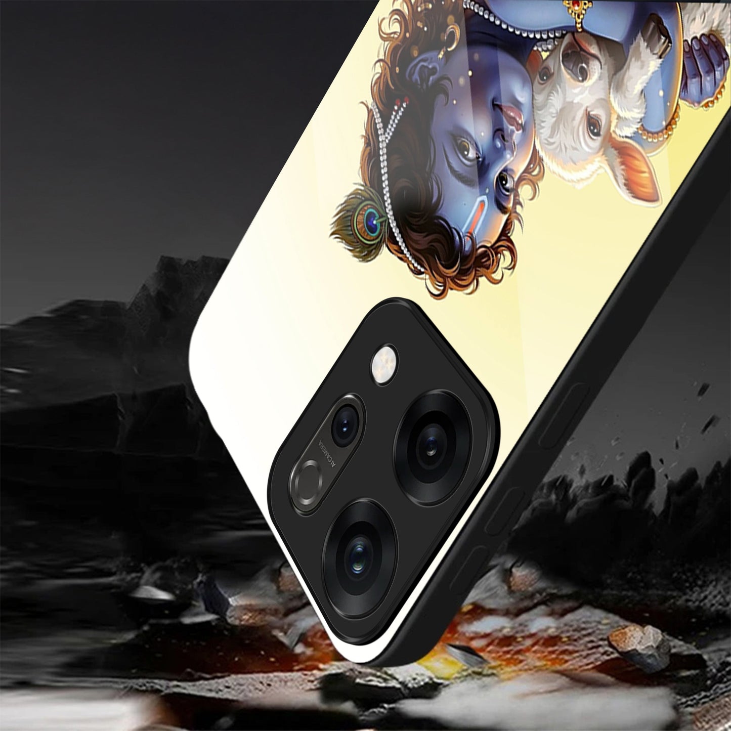 Oppo Reno 14 5G Premium Acrylic Shockproof Glass Back Case (Cute Krishna)