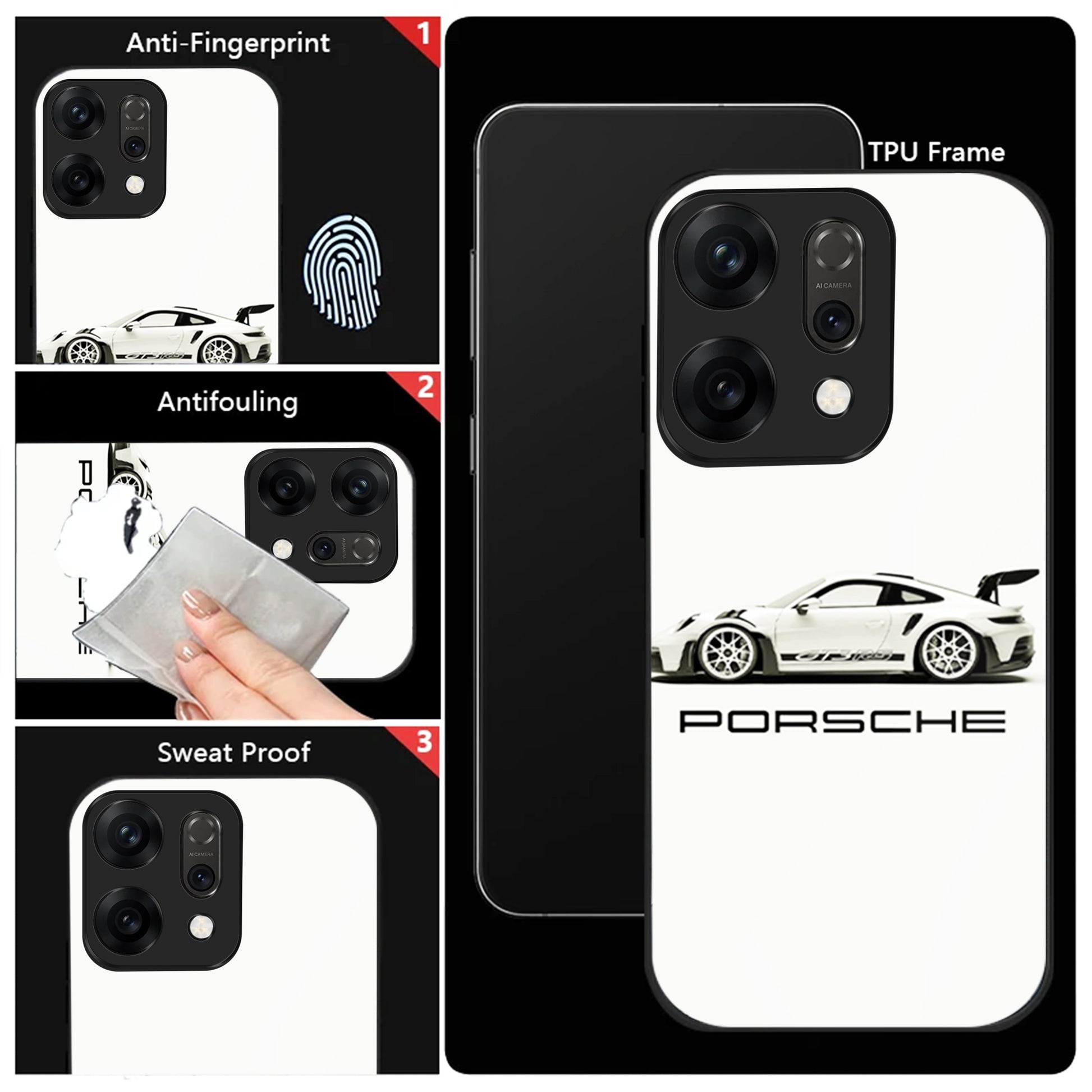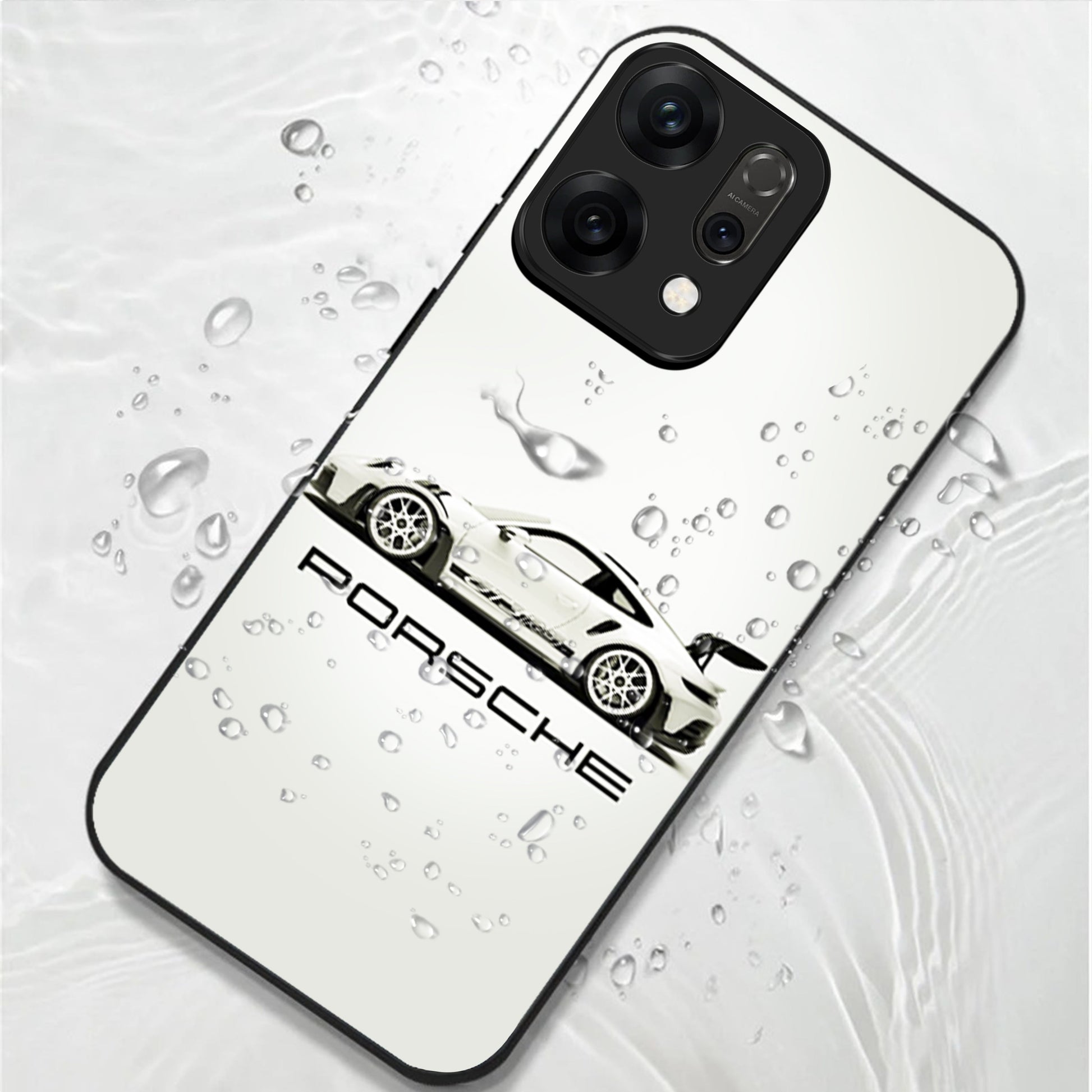 Oppo Reno 14 5G Premium Acrylic Shockproof Glass Back Case (White Porsche)