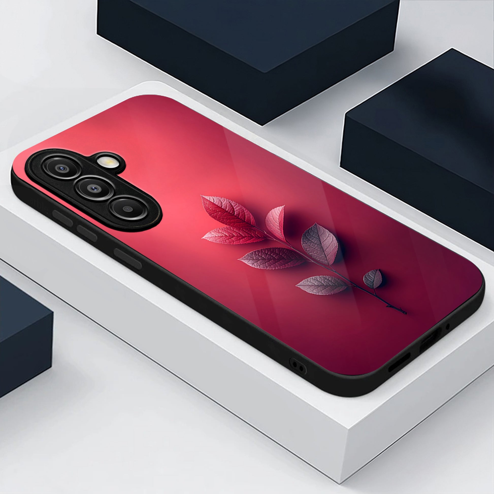 Samsung Galaxy A56 Premium Acrylic Shockproof Glass Back Case (Pink Leaf)
