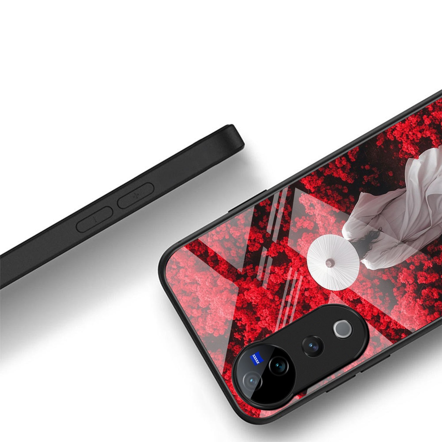 Vivo V40 Pro 5G Premium Acrylic Shockproof Glass Back Case (Red Blossoms)